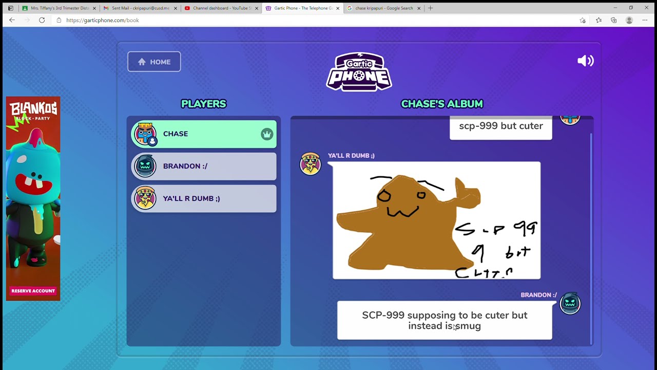 If you find this site serviceableness, please support us by sharing this posts to your preference social media accounts like Facebook, Instagram and so on or you can also Get this blog page with the title Gartic Phone - The Telephone Game by using Ctrl + D for gadgets a laptop with a Windows operating system or Command + D for laptops with an Apple operating system. If you use a smartphone, you can also use the drawer menu of the browser you are using. Whether it’s a Windows, Mac, iOS or Android operating system, you will still be able to bookmark this web.
